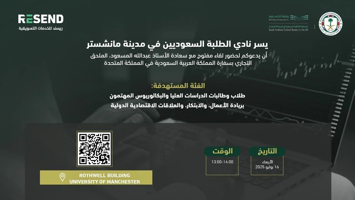 لقاء نادي مانشستر الطلابي مع الملحق التجاري للمملكة المتحدة